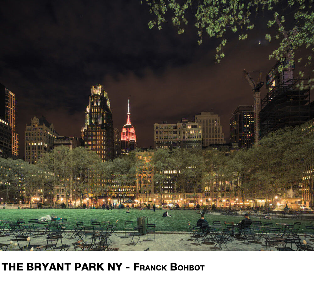 < Franck Bohbot gelingt es den Betrachter in sehr unterschiedliche Welten zu versetzen, wobei die Schönheit seiner Arbeit in dieser Vielfalt liegt. Zunächst New York: Bohbot schafft zahlreiche Nachtansichten der Stadt. Belebt durch die vielen Lichter, ersteht sie erneut. Der Time Square, Restaurants oder auch Wolkenkratzer soweit das Auge reicht: Franck Bohbot gelingt es immer wieder die Ruhe einer dennoch so dynamischen Stadt wiederzugeben.
